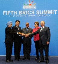 I ministri delle finanze dei Paesi BRICS, Brasile, Russia, India, Cina e Sud Africa, si sono incontrati a Durban, in Sud Africa, per il quinto vertice dei BRICS, il 26-27 marzo 2013. “Non molto tempo fa abbiamo discusso la creazione di una banca di sviluppo… Oggi siamo pronti per il lancio“, ha detto il presidente sudafricano Jacob Zuma. Il gruppo BRICS ha presentato la nuova banca di sviluppo, che mira a rompere il monopolio detenuto dalle istituzioni finanziarie occidentali. “E’ fatta”, ha detto Pravin Gordhan, ministro delle Finanze sudafricano, aggiungendo che “abbiamo fatto ottimi progressi” nella creazione di un’agenzia analoga alla Banca Mondiale (BM) e al Fondo Monetario Internazionale (FMI). “Il fatto che in un anno sia possibile avviare un’idea e metterla a punto, con cinque Paesi diversi che decidono di averne stabilito la fattibilità e la sostenibilità, è un progresso fenomenale che raramente si è visto nel mondo“, ha detto Gordhan.