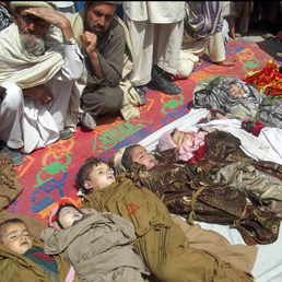 In quest’altra foto si vedono undici bambini afghani (i nomi nessuno li ha pubblicati; tanto, undici più, undici in meno, che importanza hanno: afghani sono!) uccisi da un missile lanciato da un Drone in dotazione all’esercito di occupazione USA.