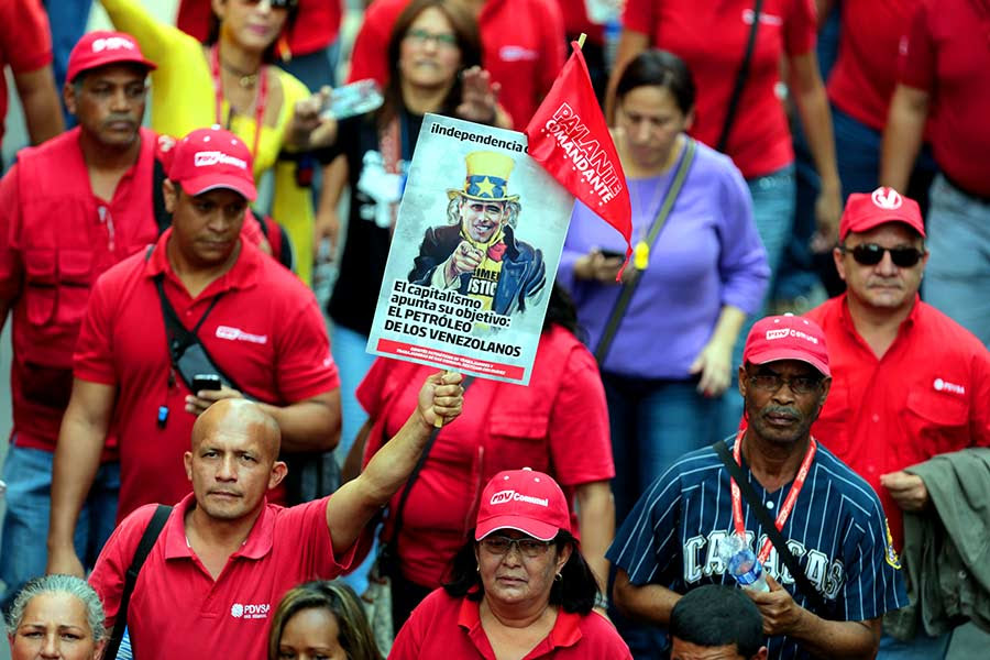 Centinaia di migliaia di lavoratori manifestano a Caracas in appoggio della rivoluzione bolivariana (18 febbraio 2014)