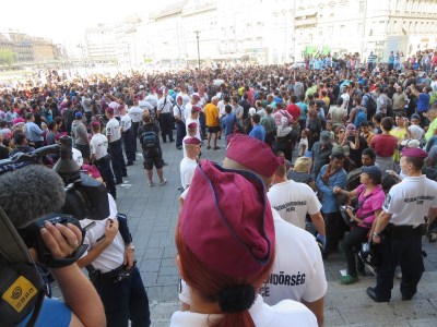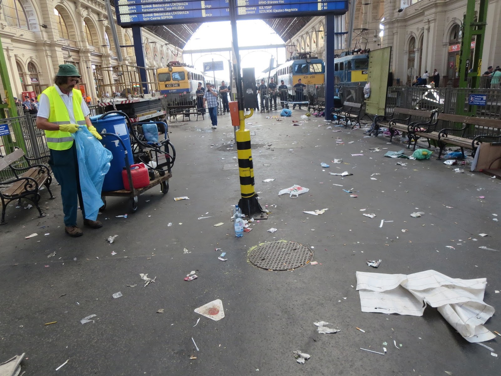 Per accedere in stazione mi sono sottoposto ai controlli speciali scattati dopo la decisione di chiudere la stazione al traffico ferroviario e ai movimenti dei passeggeri. Per alcune ore, sono rimasto bloccato dentro la stazione insieme ai profughi e ai poliziotti e così ho potuto assistere allo svolgimento delle fasi più drammatiche dall’occupazione pacifica dei treni in partenza per l’Austria e la Germania all’evacuazione dei suddetti treni, al ritorno degli extracomunitari nel piazzale antistante la stazione (Baross ter) dove hanno continuato la protesta.