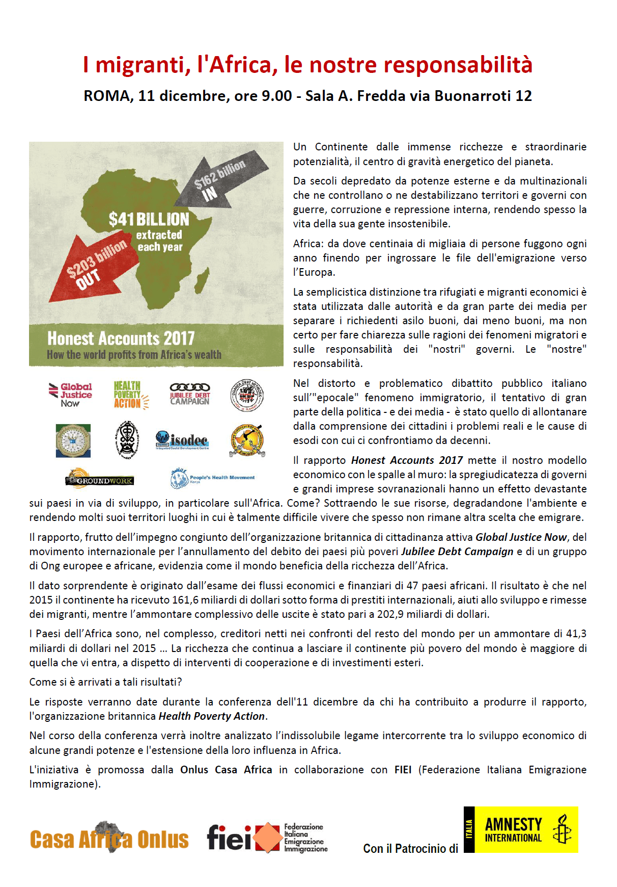 L’iniziativa è promossa dalla Onlus Casa Africa in collaborazione con FIEI (Federazione Italiana Emigrazione Immigrazione). Con il Patrocinio di Amnesty International – Italia.