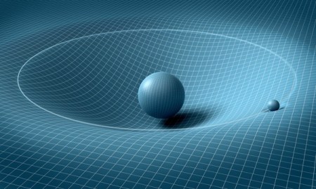 Un paio di secoli dopo, Einstein, spiegò la faccenda in altro modo. Le masse curvano lo spazio come una biglia di ferro farebbe su un telo teso (lo spazio, anche se la metafora è in 2d e lo spazio è in 3D, anzi in 4d ma lasciamo da parte il tempo). I pianeti ruotano intorno al Sole e per la sola energia cinetica effettivamente schizzerebbero via per la tangente, ma, essendo lo spazio curvato dalla massa del Sole, sono altresì risucchiati verso di lui. La faccenda quindi è in equilibrio, i pianeti non schizzano via, non precipitano verso il Sole e noi siamo qui a poterne parlare.