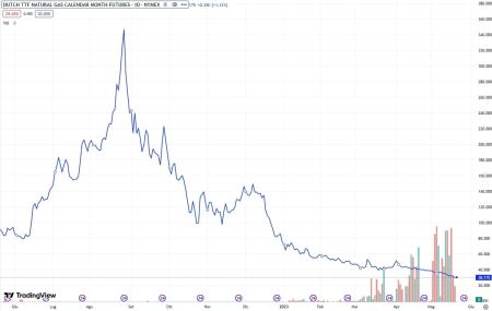 Grafico 3: andamento della quotazione del gas sul mercato TTF fra giugno 2022 e giugno 2023