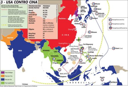 Carta 2: la carta geopolitica dell’Indo-Pacifico con basi militari Usa. Fonte: Limes