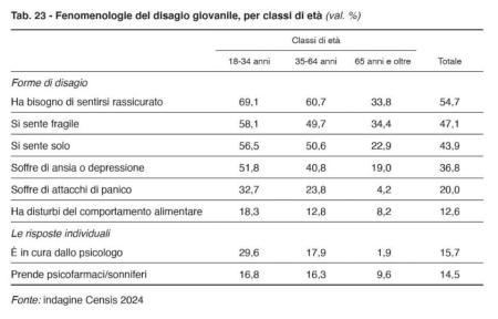 ALCUNE TABELLE E GRAFICI DALLA SINTESI DEL RAPPORTO CENSIS 2024