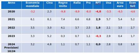 Tabella 1: variazione percentuale annua del Pil nelle principali economie e raggruppamenti di stati. Periodo 2020-2023 e previsioni 2024. Fonte: Word Economic Outlook Fmi