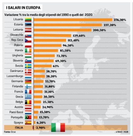 4 https://www.ilfattoquotidiano.it/2022/08/30/stipendi-nel-2021-inversione-di-tendenza-ma-in-30-anni-sono-saliti-solo-dello-03-litalia-resta-ultima/6769153/