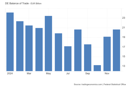 Grafico 2: saldo mensile della bilancia commerciale tedesca nel 2024. Fonte: Destasis