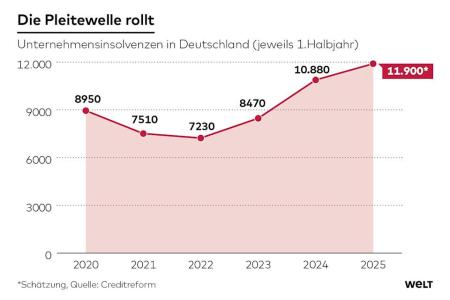 Grafico 3: il numero di fallimenti aziendali nei primi semestri del periodo 2020-2025 in Germania
