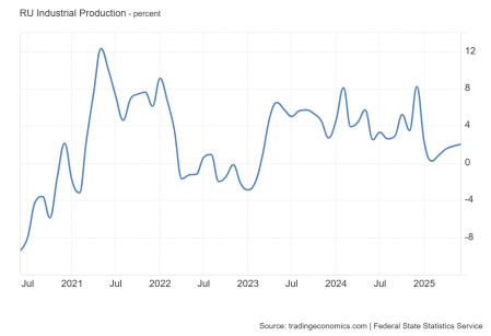 Nonostante alcuni organi d’informazioni9 continuino a ventilare una imminente crisi della Russia, la produzione industriale è cresciuta del +1,8% a maggio e del +2,0% a giugno 2025.