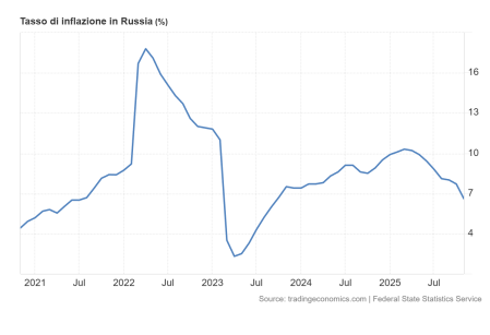 Grafico 2: tasso di inflazione in Russia da novembre 2020 a novembre 2025